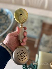 telefono da arredo in onice o alabastro con parti in ottone o metallo dorato.