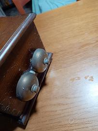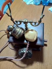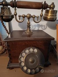Bellissimo telefono antico in ottimo stato di conservazione. Legno molto bello,lucido ,cornetta in stile e tastiera in metallo da ruotare per comporre il numero.Doppia suoneria a campana sul retro. Se qualcuno fosse interessato a visionarlo lo farei volentieri potendo anche accordarci sul prezzo.