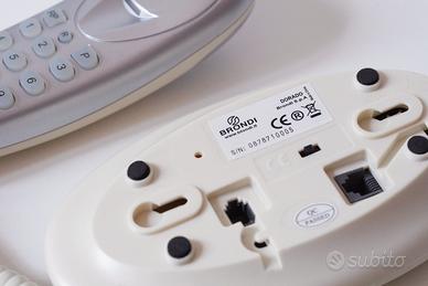 Design e stile, ancora nuovo nella sua confezione originale, imballo e manualistica tutto compreso. Mai utilizzato, mai installato, uso semplice e facile da collegare alla spina telefonica RJ11, colore bianco-grigio satinato, base con predisposizione per muro, cavetto cornetta, cavetto muro, suoneria tradizionale, piedini con feltro per non strisciare il modibile, tastiera in gomma, ingomboro minimo, tutto in plastica marchiato CE. A casa e in ufficio può essere utile per sostituire un apparecchio vecchio o guasto.