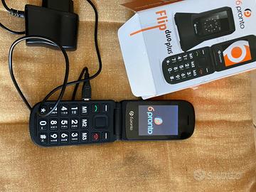 Telefonino marca 6 pronto flip dual plus . con tasti grossi per persone anziane dual SIM . Funzionante . Usato poco . Completo di scatola e caricatore con cavo .