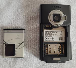 Telefono cellulare Nokia N80, batteria in ottimo stato, laccetto, caricabatteria Usb, cavo dati USB, auricolari originali, miniSd dal 128 Mb, perfettamente funzionante e in buone condizioni, l'unica pecca è il coperchietto della miniSd che non sta più agganciato(si vede in foto).