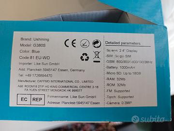 Cellulare Ushining G380S, di colore blu, pensato per anziani.