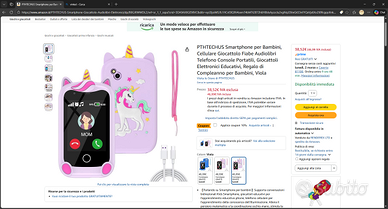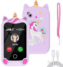 NUOVO IN CONFEZIONE ORIGINALE ANCORA SIGILLATO. Vendo per errato acquisto su Amazon. Telefono cellulare progettato per bambini 4/10anni con custodia in silicone morbido a forma di unicorno. dimensioni molto compatte. Slot per scheda Sim - presa USB-C - Lettore musicale MP3 - Macchina fotografica con possibilità di aggiun gere adesivi alle foto - Memoria 32Gb.