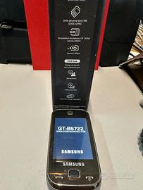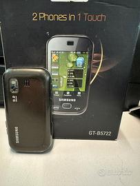 telefono cellulare Samsung GT-B5722 Dual SIM, un modello vintage rilasciato nel 2009. Schermo: Touchscreen da 2,8 pollici con risoluzione QVGA. Fotocamera: Principale da 3,2 Megapixel. Connettività: Supporto Dual SIM (EDGE+GPRS), Bluetooth e radio FM con funzione di registrazione. Audio: Lettore MP3 integrato. con carica batterie da parete funzionante al 100% durata batteria da verificare