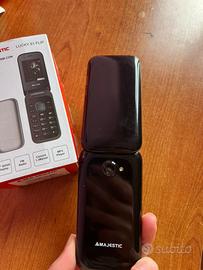 Telefono con tasti, si puo inserire la sim, presente di fotocamera. É funzionante. Telefono gsm con flip attivo (majestic)