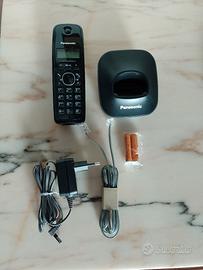 Panasonic telefono cordles nero con batterie ricaricabili, alimentatore, base, cavetti.