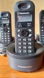 Telefono Cordless Panasonic TRIO composto da unità primaria collegata alla linea urbana e altre 2 unità secondarie collegate solamente alla corrente elettrica.