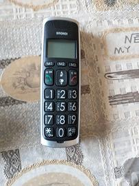 TELEFONO CORDLESS BRONDI MODELLO BRAVO GOLD CON BASE DI RICARICA BATTERIE. Ampio display alfanumerico retroilluminato di facile lettura ed è provvisto di un alto volume degli squilli. Tastiera con i suoi grandi tasti. La rubrica telefonica possiede 20 memorie alfanumeriche e 3 memorie dirette tramite tasti dedicati. Nelle chiamate entranti è presente l’identificativo del numero telefonico della chiamata in entrata.Colore nero