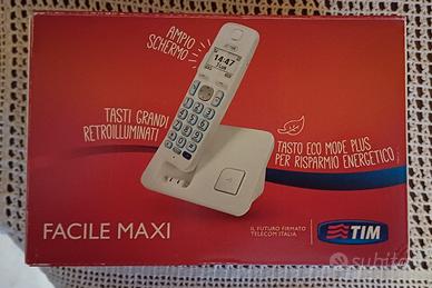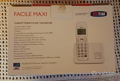 Telefono cordless TIM Facile Maxi con tasti grandi retroilluminati e ampio schermo. - Tasti grandi e retroilluminati. - Ampio schermo. - Base di ricarica inclusa. - Manuale d'uso presente.