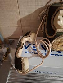telefono d"epoca s 62 bianco con copertura in velluto bordato oro molto bello e funzionante