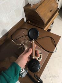 Telefono da tavolo classico con finiture in legno e ottone design vintage Perfettamente funzionante Ottimo per arredamento