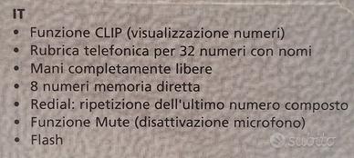 Perfettamente funzionante, dotato di agenda interna, ampio display per svariate informazioni (datario, orario, caller-ID...), viavoce molto potente, funzione MUTE e LED flash. Si alimenta con pile AAA. Cedo con corredo di confezione originale e manuale gelosamenti conservati.