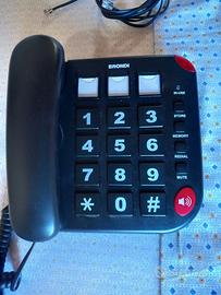 TELEFONO FISSO BRONDI BRAVO 15 NERO, INDICATO PER UN PUBBLICO SENIOR, HA TASTI GRANDI, BEN SPAZIATI E IN RILIEVO. PERSONALIZZAZIONE LIVELLO SUONERIA E VIVAVOCE, SI POSSONO IMPOSTARE 10 MEMORIE INDIRETTE E 3 MEMORIE DIRETTE CON FOTO, SPIA LUMINOSA PER CHIAMATE IN ENTRATA E CAVO TELEFONICO. VENDO PER INUTILIZZO.