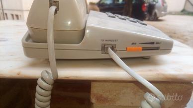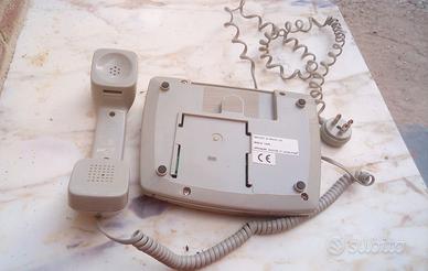 Telefono fisso da tavolo a tasti omologato da MARSPED Sas modello TL55OX, realizzato in plastica bicolore beige/tortora e completo di cavi e presa a tre poli. Ideale per persone anziane e/o collezionismo. Funzionante. Misure: 20x15,5 H alla cornetta 7,5