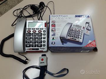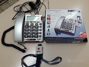Vendo telefono fisso "Switel", come da foto, dotato di grandi tasti luminosi e completo di trasmettitore di allarme e chiamate di emergenza, manuale di istruzione. Il telefono è predisposto per installazione a parete.