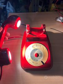 Stupendo telefono della Sip con disco trasformato a lampada LED con due faretti nella cornetta la stessa che è movibile quindi con varie possibilità di posizionarla o lasciarla nella sede ,molto bello da vedere al buio, accensione von micro interruzione ,telefono stato verniciato rosso mattone ottima qualita lavoro top ottima idea i regali per Natale pezzo unico