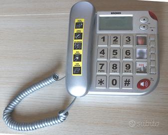 Brondi Super Bravo Plus Telefono a filo senior con telecomando SOS, Installabile anche a muro, Grigio (Argento)