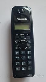Telefono fisso senza fili Panasonic. - Colore nero. - Base di ricarica inclusa. - Alimentatore. - Cavo telefonico.