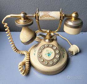 Raro e originale Telefono Telcer vintage da antiquariato, di fine anni 70, color Avorio e placcato Oro 18k, con particolari DIPINTI A MANO. Marchio TELCER GOLD PLATED-18K sul fondo. Integro e senza rotture, funzionante e completo di cavo originale e spina telefonica.