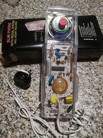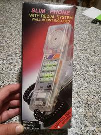 telefono trasparente vintage, luminoso, ancora nel suo imballo. oggetto raro e da collezione