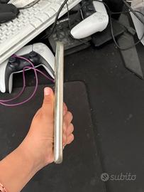 Il seguente telefono é del 2022 ed é stato comprato appena é uscito, ha una riga in mezzo ma niente male, telefono adatto per messaggiare, chiamare e usarlo per secondi usi.