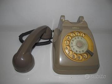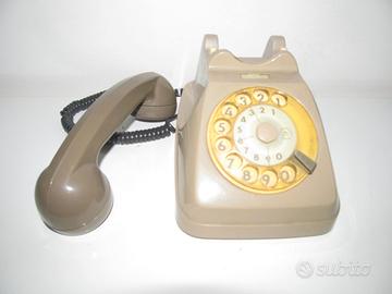 Telefono fisso vintage degli anni '70, un pezzo di design italiano. Questo telefono, con il suo caratteristico quadrante rotante e il colore beige, è un oggetto da collezione. Non sono in grado di verificarne il funzionamento.