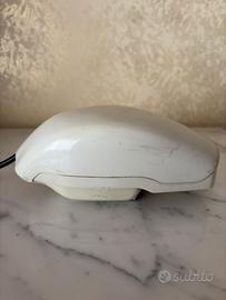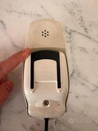 Iconico telefono a conchiglia modello "Grillo", disegnato da Marco Zanuso e Richard Sapper nel 1965 per Auso Siemens / SIP. Un vero e proprio pezzo di storia del design industriale italiano. Colore bianco/panna, completo di disco combinatore originale e spina tripolare SIP dell'epoca. Presenta evidenti e normali segni del tempo sulla scocca esterna. Non avendo la presa adatta non l'ho testato, per cui lo vendo come oggetto da collezione.