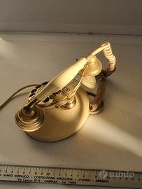 Descrizione: Telefono da tavolo in stile barocco, color crema e oro, con disco decorato da un cammeo. Estetica elegante, da collezione.