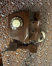 Elegante telefono fisso a disco, colore marrone caldo, prodotto da Telart Viareggio, celebre per i suoi modelli solidi e dal design iconico anni ’70-’80.