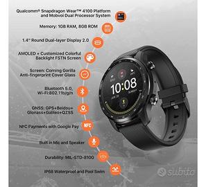 Come da oggetto vendo smart watch Tick Whatch Pro 3 Ultra nuovo modello bluetooth (no lte) sistema wear OS (Android) supporta playstore quindi WhatsApp telegram Facebook ecc GPS integrato