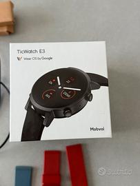 Vendo TicWatch E3, smartwatch completo di tutto, scatola originale, accessori originali, caricabatterie e altri due cinturini aggiuntivi con relativa scatola (visibili in foto, quello rosso e quello blu). Lo SmartWatch è perfetto, il display non presenta nessun graffio, in quando utilizzato sempre con pellicola. Questo orologio permette di effettuare e rispondere a chiamate e messaggi. Completo di tutte le attività legate al fit ed equipaggiato con sistema operativo WearOs. Smartwatch per android, al pari di AppleWatch. Orologio Top di gamma. Condizioni perfette.