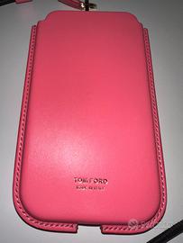 Tom Ford cover iPhone in pelle rosa con tracolla rimovibile. Misure case: larghezza 9 cm - altezza 14 cm - spessore 1 cm.