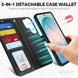 La custodia appare di ottima qualità: materiali piacevoli al tatto, finiture ordinate e, nell’uso quotidiano, è davvero comoda. La parte portafoglio con porta carte è pratica quando non si ha voglia di portarsi dietro tutto, e la funzione 2-in-1 staccabile è un plus reale: puoi tenere la cover “snella” quando serve e riagganciarla al libretto quando vuoi più protezione e carte a portata di mano. Apprezzato anche il blocco RFID, dettaglio che su questo tipo di custodie fa sempre comodo.