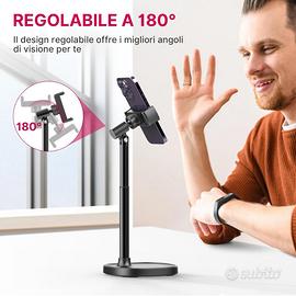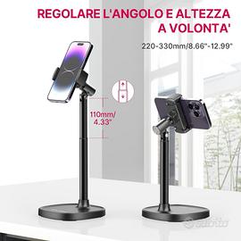 Vendo questo pratico supporto per telefono, perfetto per guardare video o effettuare videochiamate. È regolabile in altezza e angolazione, garantendo una visione comoda.