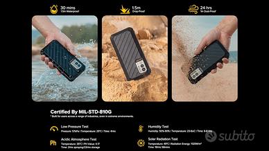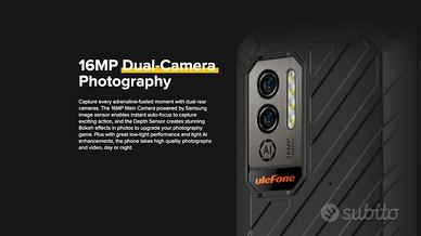 Ulefone Android 12 Rugged Smartphone ARMOR X11 PRO, Batteria 8150mAh, Fotocamera Subacquea 16MP, Helio G25 4GB+64GB, Cellulare Robusto Impermeabile IP68 5,45'', DUAL SIM, Slot Per 3 Schede, NFC GPS Dimensioni del prodotto: 158,2*76,7*19,3 mm Peso del prodotto: 330 Sistema operativo: Android 12 CPU: MediaTek Helio G25 Octa Core fino a 2,0 GHz GPU: IMG GE8320 520 MHz Tipo: Smartphone robusto IP68/IP69K (impermeabile/antipolvere/antiurto Archiviazione RAM: 4 GB ROM: 64 GB Scheda di memoria esterna: Sì, supporto massimo 256 GB Visualizza Dimensioni schermo: 5,45 pollici HD+ Risoluzione dello schermo: 720*1440 Multi-touch: 5 Fotocamera Pixel fotocamera posteriore: fotocamera Samsung S5K2P7 da 16 MP Pixel della fotocamera anteriore: fotocamera per selfie da 5 MP Registrazione video 1080P, Fotografia subacquea 4 LED Rete Cellulare: 2G/3G/4G Conversazione in rete: dual sim dual standby WLAN: 802.11 b/g/n(2.4G) DOPPIA SIM 3 slot per schede: slot per nano sim*2 + slot per schede micro SD Altro: NFC, GPS Versione Bluetooth: Bluetooth 5.0 Batteria: 8150 mAh, ricarica rapida 10 W Tempo di standby: 444 ore, Tempo di conversazione telefonica: 44 ore Sensore: sensore di accelerazione, sensore P, sensore L, bussola, NFC Face Unlock: Sì Interfaccia I/O: tipo C, auricolare da 3,5 mm Radio FM: Sì (senza auricolare) Lista di imballaggio 1 x Smartphone robusto Armor X11 PRO 1 x caricatore 1 x cavo USB di tipo C 1 x pellicola protettiva in vetro temperato 1 x ago SIM