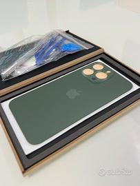 Vetro Posteriore di Ricambio per iPhone 13 PRO con Kit di Attrezzi, colore verde, marchiato Apple ma non è un pezzo originale.
