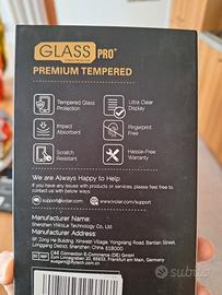La scatola contiene 2 vetri protettivi per cellulare misura 16x7cm con foro per fotocamera in alto a sinistra. Il kit è conpleto di tutto l'occorrente per posizionare correttamente la pellicola, tra cui istruzioni, adesivi e dust remover.