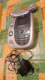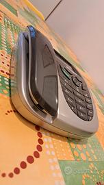 Video telefono Telecom con collegamento alla rete tramite ADSL e cavo per la batteria. Apparecchio da collezionismo, batteria scarica e probabilmente da sostituire, ma notevole oggetto vintage