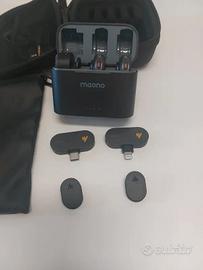 Microfono wireless di nuova generazione - Il MAONO WAVE T5 (solo 9g!) unisce design compatto e tecnologia avanzata. Questo mini microfono lavalier offre qualità audio broadcast e cancellazione del rumore regolabile - perfetto per filmmaker, vlogger e podcaster. Qualità audio professionale - Con 80dB SNR, 120dB SPL max e formato 48kHz/24-bit, questo microfono lavalier wireless cattura ogni dettaglio sonoro con rumore di fondo minimo. Ideale per registrazioni professionali. Cancellazione del rumore intelligente - Il chip ENC e l'algoritmo separano perfettamente la voce dai rumori. 3 modalità/14 livelli tramite l'app MAONO LINK per un suono sempre chiaro. Filtri vocali esclusivi - Da caldo a brillante: i preset ottimizzano la tua voce per ogni scenario. Post-produzione minima, risultato massimo - perfetto come microfono per smartphone. Utilizzo semplificato - Plug-and-play, accoppiamento immediato. Un pulsante per mute/cancellazione rumore, pressione prolungata per controllo remoto (video/foto). Concentrati sulla creatività!