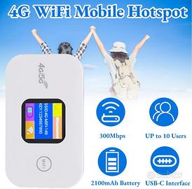 Hotspot Mobile 4G, Router WiFi da 300 Mbps Ad Alta velocità con Slot SIM Fino a 10 Dispositivi, Dispositivi Hotspot Portatili con Display a LED, per Campeggio da Viaggio