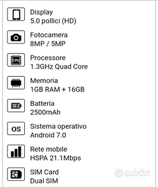 Vendo per inutilizzo smartphone Wiko Lenny 4.