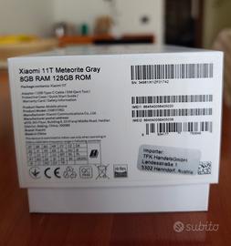 Xiaomi 11T meteorite gray, 8 GB RAM 128 GB ROM, fotocamera 108 MP, condizioni estetiche pari al nuovo, completo di box, alimentatore, cavo e manuale. ATTENZIONE - la fotocamera non funziona correttamente, le foto vengono sfocate.