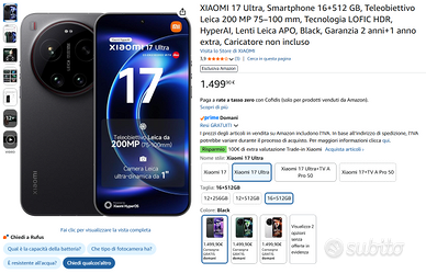Vendo Xiaomi 17 Ultra 16GB RAM / 512GB colore nero.