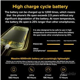 Vendo smartphone POCO M3, versione 64GB , nuovo di zecca e mai aperto. La scatola ha ancora il sigillo originale intatto (mai rimosso).È un telefono eccezionale per chi cerca un'autonomia infinita. Ideale come regalo, come telefono principale per chi usa molto i social o come muletto da lavoro. Vantaggi: -Batteria enorme da 6000mAh: Fino a 2-3 giorni di durata. -Schermo grande: 6.53"FHD+ perfetto per video e film. -Fotocamera: Tripla camera da 48MP.-Stato: Nuovo, sigillato.Consegna: Scambio a mano a Bologna o spedizione sicura con TuttoSubito.Disponibile da subito. No perditempo, il prezzo è leggermente trattabile.intersanto Whatsapp 3715834954