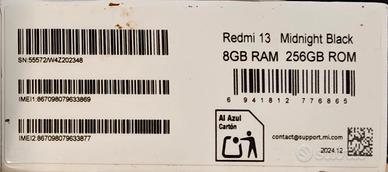 Xiaomi Redmi 13 Midnight Black 8 GB RAM 256 GB ROM completamente NUOVO, confezione sigillata, mai aperta.