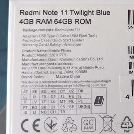 Smartphone Redmi Note 11 - 4GB / 64GB - Twilight Blue - usato pochissimo e sempre tenuto con grande cura. Perfettamente funzionante, con Android 13 e relativo Play Store ufficiale Google.
