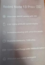 vendo xiaomi redmi note 13 pro+ plus 5g da 256gb con custodia usato come secondo telefono, con scatola, caricabatteria originale 120w, custodia originale e vetro temperato ancora da installare, foto reale.
