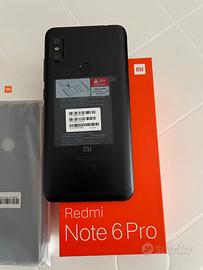 Xiaomi Redmi Note 6 Pro 4 ram 64 rom completo di scatola e accessori: cavo, alimentatore, cover, pellicola di vetro applicata, usato pochissimo come nuovo.