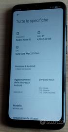 Lo vendo perché la qualità delle foto non mi soddisfa e perché avevo bisogno di un telefono con 128GB La scocca del telefono e la batteria sono in buone condizioni. Il telefono è sempre stato usato con il guscio in silicone e la pellicola in idrogel. Caratteristiche : Profondità8,6 millimetri Dimensioni (larghezza x altezza)75,4 x 161,15 millimetri Peso200 grammi 📲 Schermo Tipo displayTFT LCD IPS Dimensione schermo6.3" pollici Risoluzione1080x2340 pixel (19.5:9) 🤖 Sistema operativo Versione del sistemaAndroid 11 MIUI 12.5.5 💽 Memoria Memoria RAM 4 GB LPDDR4X Memoria interna 64 GB (51GB disponibile) Memoria espandibileFino a 512 GB microSD, microSDXC 📷 Fotocamera Fotocamera posteriore (principale)(quad fotocamera)48 megapixel8MP ultrawide f/2.213mm1/4"1.12µm2MP macro f/2.41/5"1.75µm2MP profondità f/2.41/5"1.75µm Risoluzione fotocamera principale8000x6000 pixel Registrazione video (principale)4K UHD (3840x2160) 30 fps FlashFlash LED Diaframma (apertura)f/1.8 (aperture) Lunghezza focale26mm (obiettivo) Stabilizzazione dell'immagineEIS: Stabilizzazione digitale 📸 Fotocamera frontale Fotocamera frontale (secondaria)13 megapixel Risoluzione fotocamera frontale4128x3096 pixel Registrazione video (secondaria)Full HD (1920x1080) Diaframma (apertura)f/2.0 (aperture) 🔋 Batteria BatteriaLiPo: polimeri di litio (Fissa) Capacità batteria4000 mAh ⚙️ Processore Chipset64bit: Qualcomm Snapdragon 665 (SM6125) (11nm) CPUOcta-core, 2 processori:4x 2GHz Kryo 260 Gold (Quad-core)4x 1.8GHz Kryo 260 Silver (Quad-core) GPU (grafica)Qualcomm Adreno 610 🧭 Sensori Accelerometro Bussola Giroscopio Lettore di impronte digitali (impronta dietro) Riconoscimento facciale (sblocco) Sensore di luminositàSensore di Prossimità VibrazioneSupporta 🔌 Connettività USBUSB 2.0 Type-C, USB OTG On-The-Go Uscita per audiojack da 3.5mm Bluetooth4.2 + A2DP WiFi802.11 a/b/g/n/ac [wifi5] (2.4GHz, 5GHz) + MIMOWiFi Direct, hotspot GPSA-GPS, GeoTagging, GLONASS, GALILEO, BeiDou NF