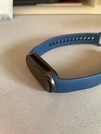 Xiaomi Smart Band 9 colorazione nera, completa di scatola originale e cavo di ricarica. La smartband è perfettamente funzionante e usata con cura. Lo schermo è in condizioni perfette, mentre la scocca laterale presenta dei leggeri segni dovuti al normale utilizzo (come visibile in foto). Venduta con cinturino blu non originale.